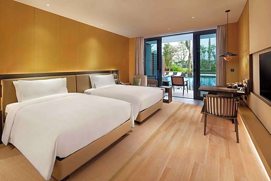 KING DELUXE ROOM WITH POOL ACCESS, 48 SQM/BALCONY/FLOOR-CEILING WINDOWS/MINIBAR, 49INCHHDTV/BATHTUB/RAINSHOWER/IRON-BOARD/SAFE